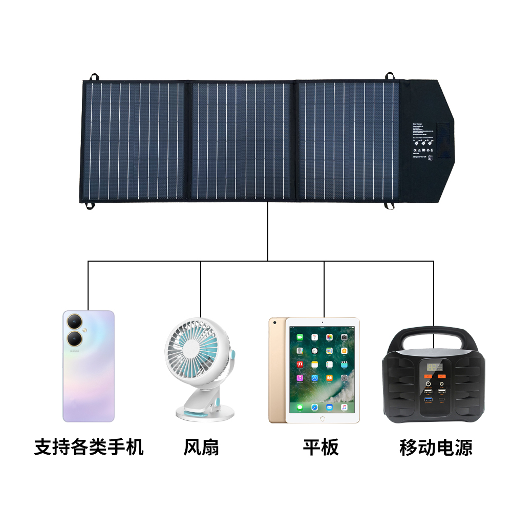 60W便攜太陽能折疊包,戶外充電小幫手